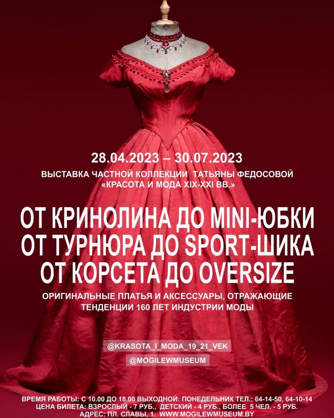Выставка «От кринолина до mini-юбки. От турнюра до sport-шика. От корсета до oversize» из частной коллекции Татьяны Федосовой «Красота и мода XIX–XXI вв.» начнет работу в краеведческом музее Могилева 28 апреля.