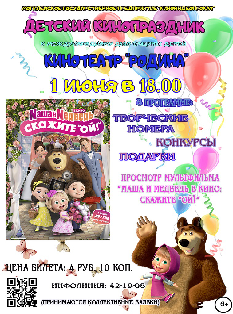Детский кинопраздник, приуроченный к Международному дню защиты детей, пройдет в могилевском кинотеатре «Родина» 1 июня. Об этом сообщили в «Киновидеопрокате».
