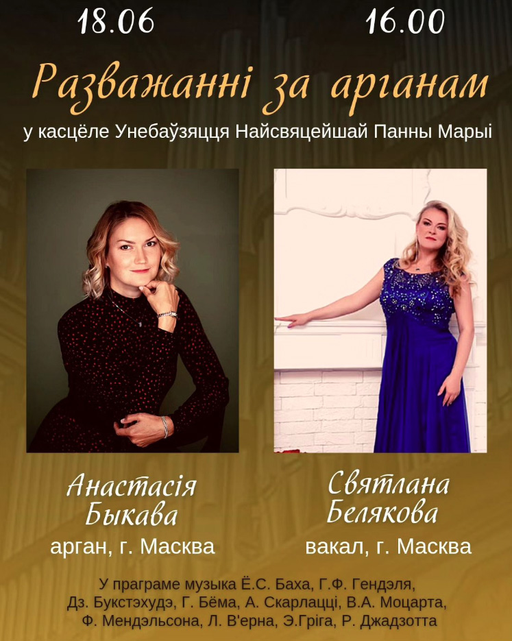 Начало концерта в 16.00. Вход за пожертвование (около 7 руб.). Дополнительную информацию можно получить по телефону: +375 29 150 17 00.