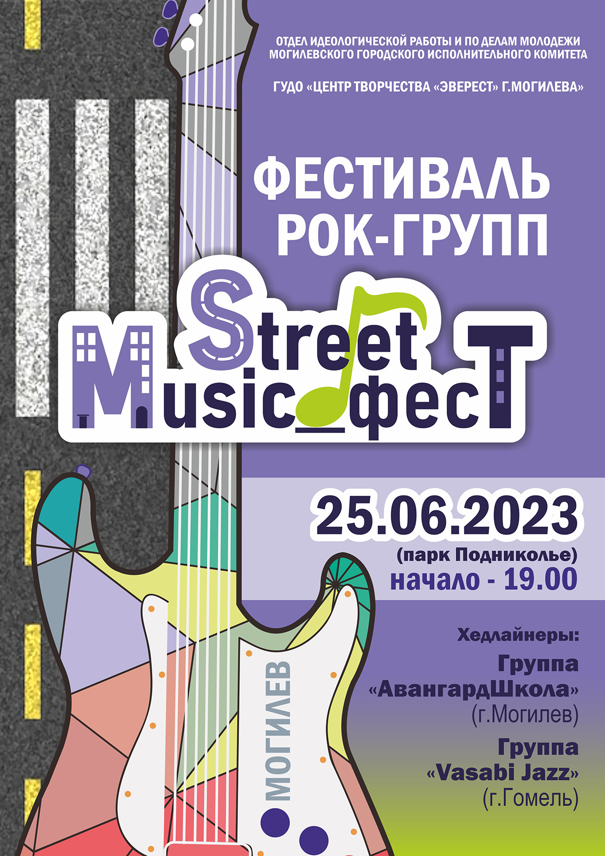 В рамках празднования Дня молодежи и Дня города в Могилеве 25 июня пройдет фестиваль рок-групп «Street Music_фест». Местом его проведения станет открытая площадка парка в Подниколье.