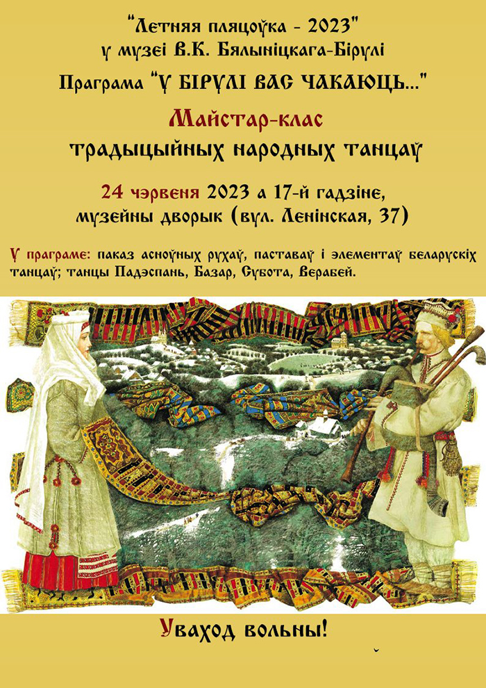 Мастер-класс по народным танцам пройдет 24 июня в музее В.К. Бялыницкого-Бирули (ул. Ленинская, 37). Об этом сообщили в учреждении культуры.