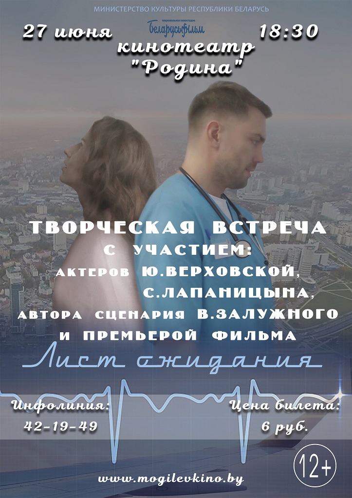 27 июня в кинотеатре «Родина» состоится творческая встреча с показом нового фильма производства Национальной киностудии «Беларусьфильм» «Лист ожидания» (Беларусь, 2023, драма, 105 мин, 12+).