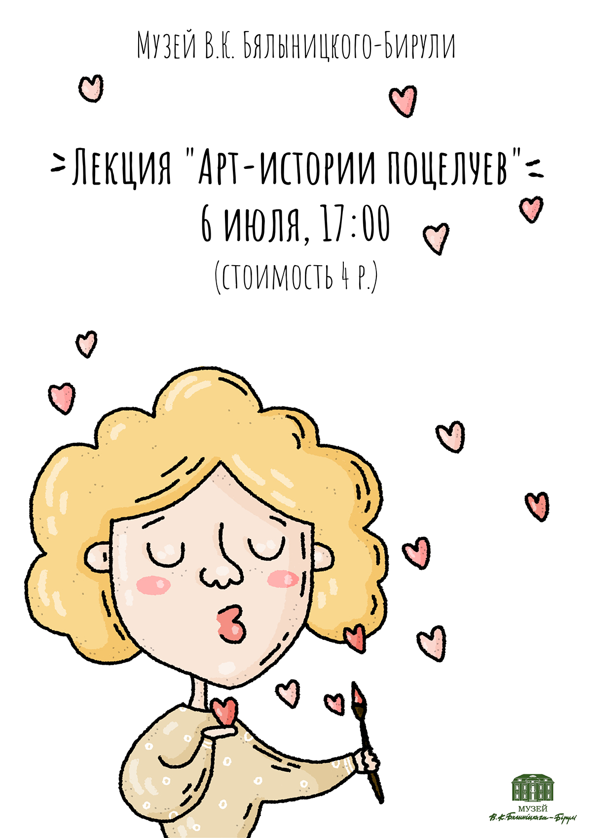 Лекция «Арт-истории поцелуев», приуроченная ко Всемирному дню поцелуев, пройдет 6 июля в музее В.К. Бялыницкого-Бирули Могилева (ул. Ленинская, 37).