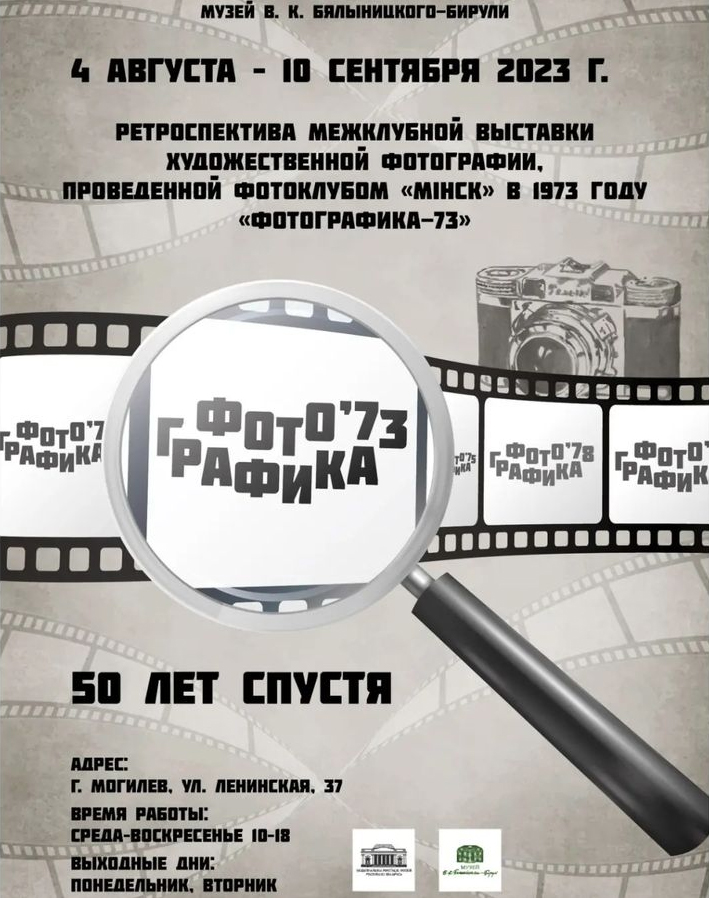 Ретроспективная международная выставка художественной фотографии, проведенной фотоклубом «Минск» в 1973 году «ФОТОГРАФИКА-73», начнет работу в музее В.К. Бялыницкого-Бирули в Могилеве 4 августа. Об этом сообщили в учреждении культуры.