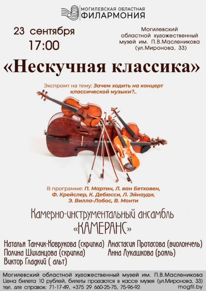 Концертную программу «Нескучная классика» представит камерно-инструментальный ансамбль «Камеранс» в Могилеве 23 сентября.