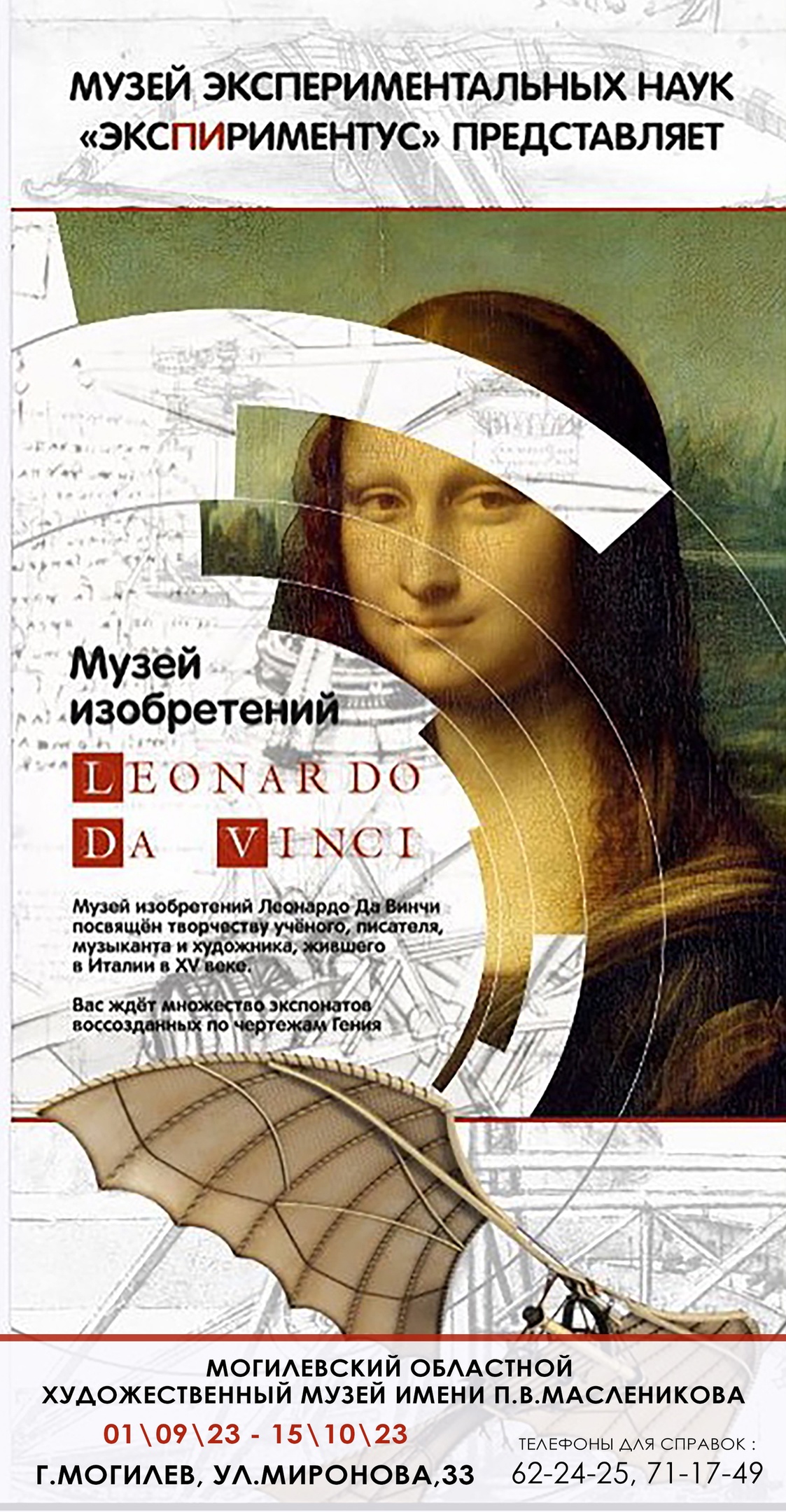 — Музей изобретений да Винчи представлен большим числом репродукций картин и технических изобретений, изготовленных по оригинальным чертежам мастера. Записи в рукописях были зашифрованы своеобразной «тайнописью» — написаны справа налево зеркальным шрифтом, нередко мастер намеренно делал ошибки в чертежах для защиты авторского права на случай кражи записей. Выставочный проект попытался воплотить идеи да Винчи в жизнь, сконструировав механизмы по его рисункам и чертежам. Посетителей ждет множество экспонатов, воссозданных по чертежам гения, — рассказали в музее им. П.В. Масленикова.