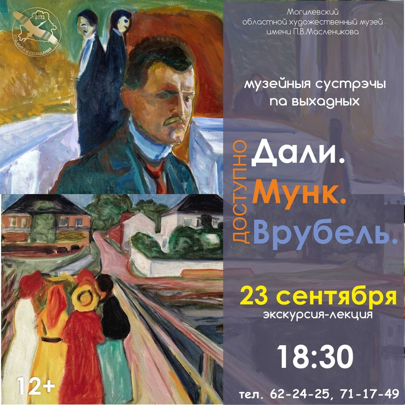 Вечером 23 сентября могилевчан приглашают на увлекательную экскурсию-лекцию «Доступно Дали, Врубель, Мунк», во время которой сотрудники музея расскажут о художественных стилях, источниках вдохновения художников доступным языком.