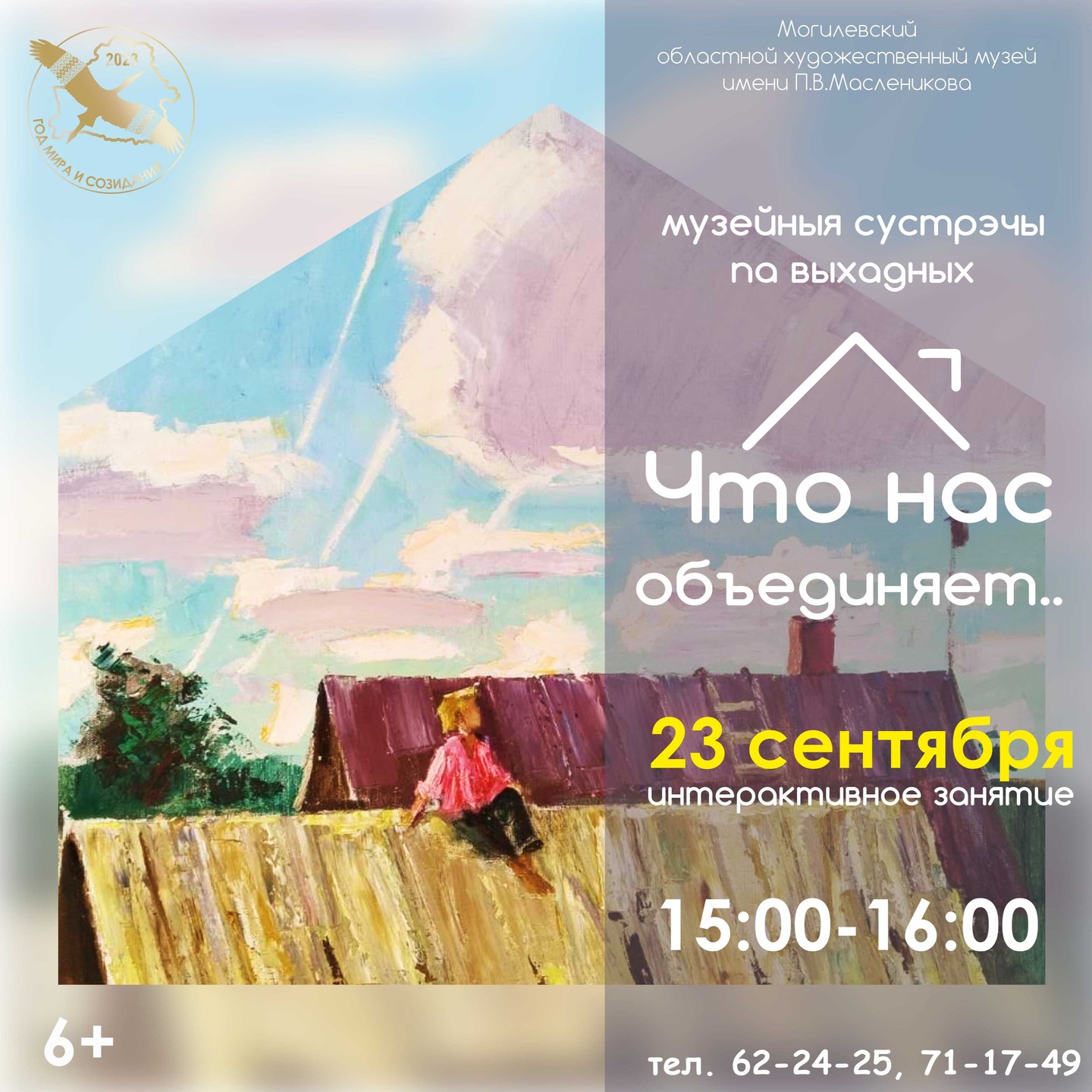 В субботу, 23 сентября, в учреждении культуры состоится интерактивное занятие «Что нас объединяет..». Во время мероприятия его участникам представится возможность познакомиться ближе с творчеством белорусских художников разных поколений. В конце экскурсии могилевчан ждет викторина, а победителя — сертификат на посещение музея, рассказали в учреждении культуры.
