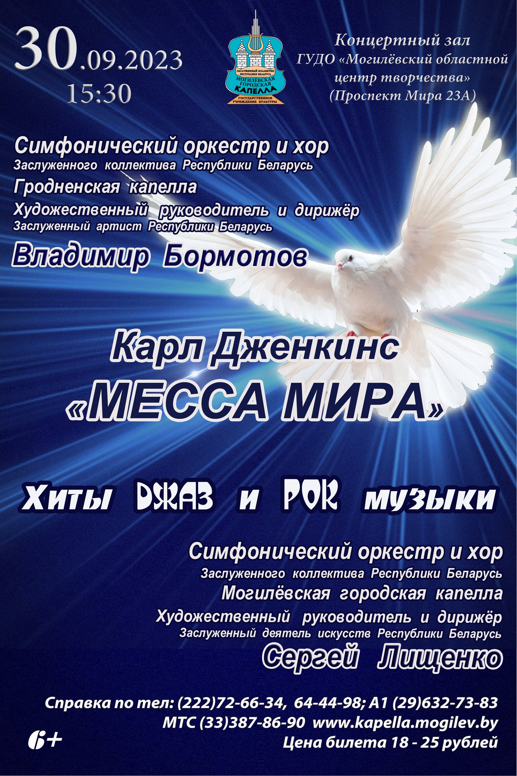 В исполнении симфонических оркестров и хоров заслуженных коллективов Республики Беларусь прозвучит шедевр современной музыки — монументальное сочинение Карла Дженкинса «Месса мира».