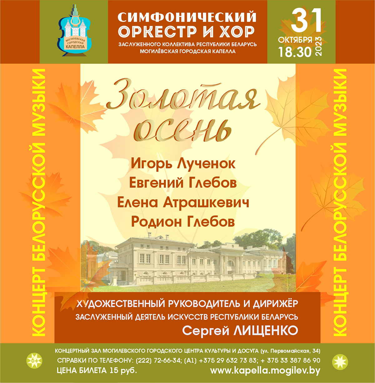 Концерт белорусской музыки готовит Могилевская городская капелла. Программу «Золотая осень» коллектив представит в концертном зале городского центра культуры и досуга 31 октября.