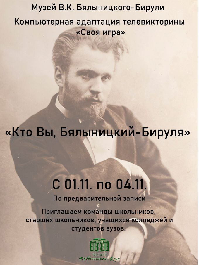 Школьников, учащихся колледжей и студентов вузов Могилева приглашают с 1 по 4 ноября принять участие в игре «Кто Вы, Бялыницкий-Бируля», которая является компьютерной адаптацией телевикторины «Своя игра».