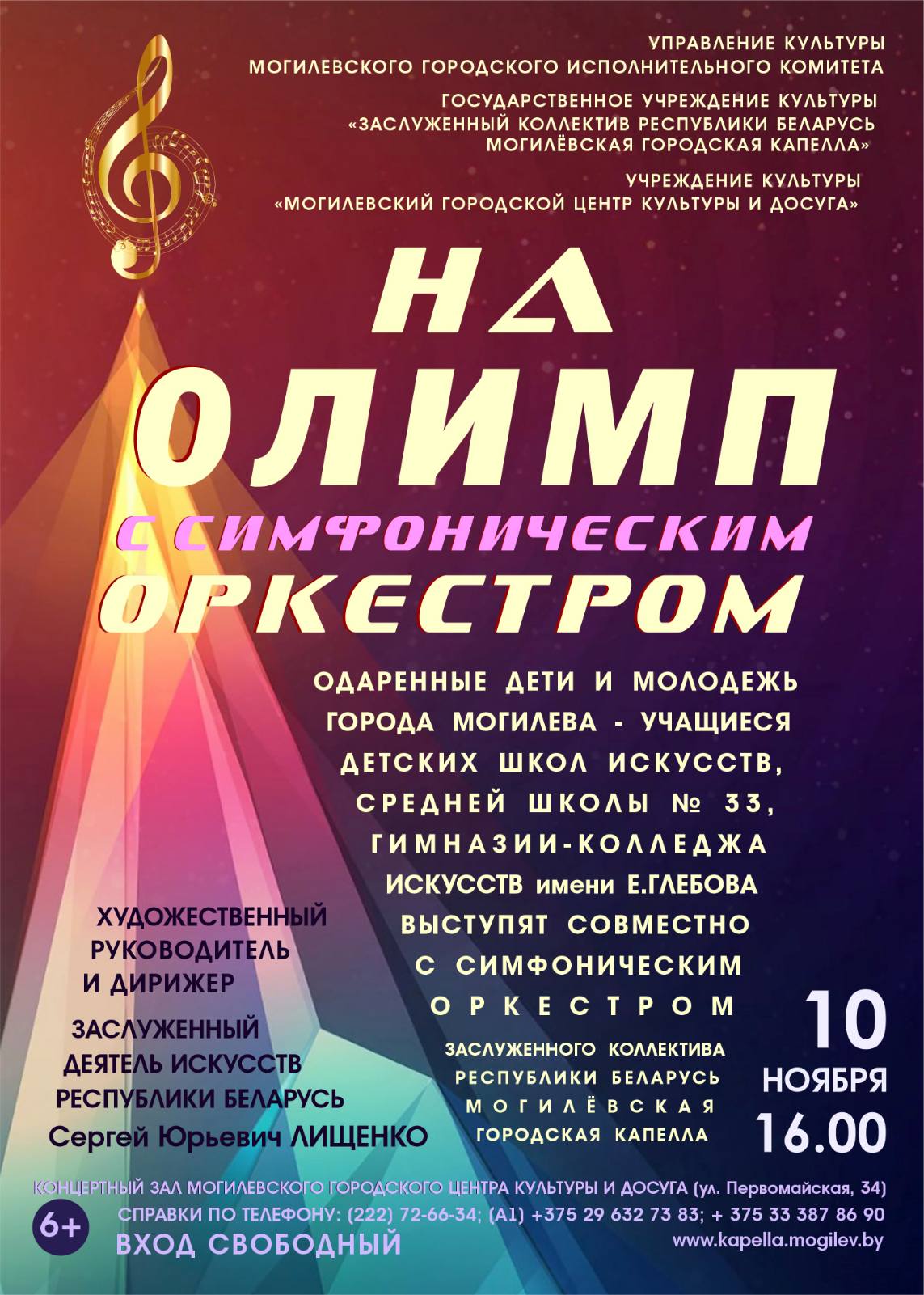Одаренные дети и молодежь Могилева — учащиеся детских школ искусств, СШ № 33, гимназии-колледжа искусств им. Е. Глебова — выступят совместно с симфоническим оркестром городской капеллы.
