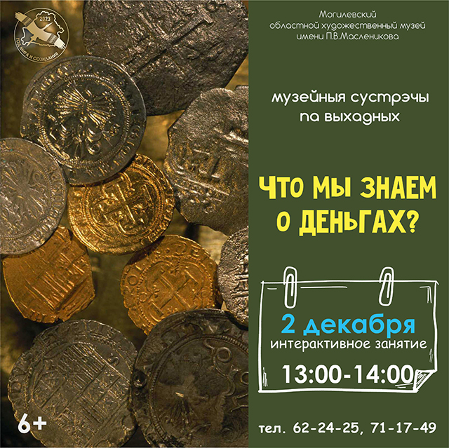 В субботу, 2 декабря, в учреждении культуры состоится интерактивное занятие «Что мы знаем о деньгах?». Во время мероприятия могилевчанам расскажут о разнообразии монет и банкнот, нумизматических редкостях и таинственных кладах. Кроме того, у участников занятия будет возможность создать интересную открытку в технике «фроттаж».