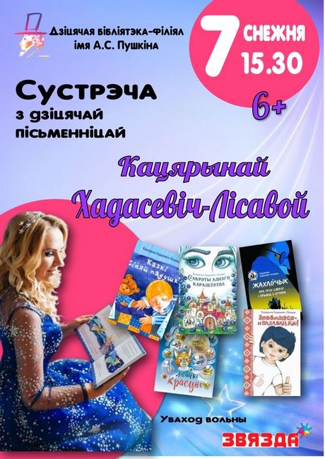 Творческая встреча с писательницей Екатериной Хадасевич-Лисовой пройдет в Могилеве 7 декабря. Мероприятие будет организовано в детской библиотеке-филиале им. А.С. Пушкина (пр-т Пушкинский, 36).
