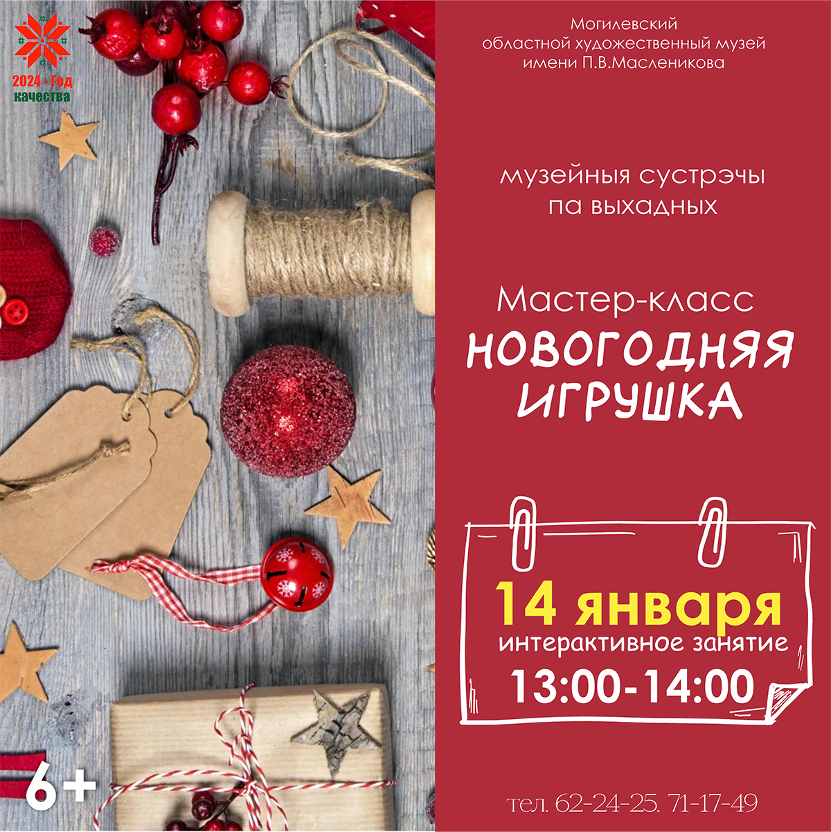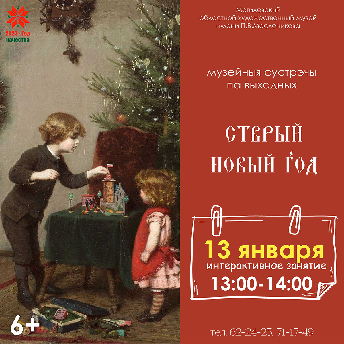 Так, в субботу, 13 января, в музее состоится занятие «Старый Новый год», во время которого могилевчанам расскажут, как и когда отмечали этот праздник, почему он появился, какие традиции с ним связаны. Участники мероприятия также рассмотрят старинные елочные украшения и поиграют в новогоднее лото. В воскресенье, 14 января, для могилевчан проведут мастер-класс по изготовлению новогодней игрушки на елку.