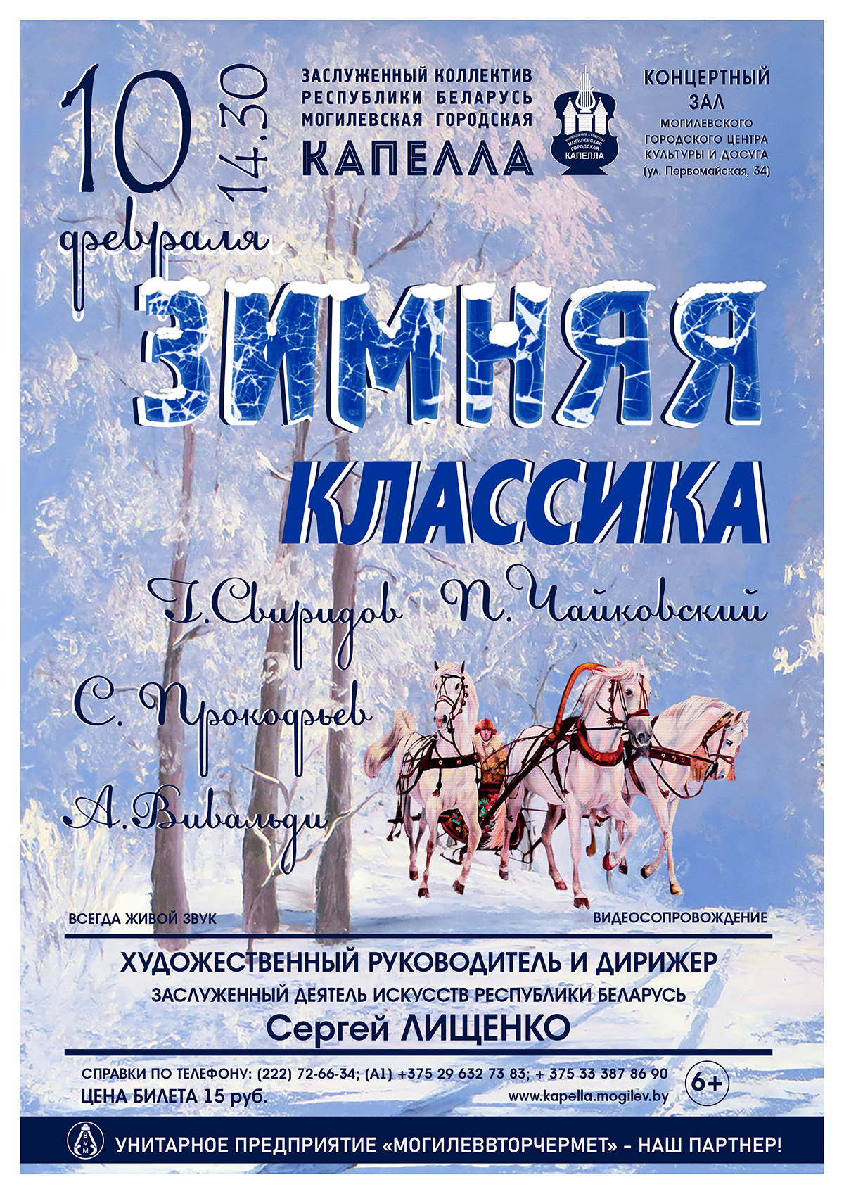 Концерт «Зимняя классика» готовит Могилевская городская капелла. Программу коллектив представит 10 февраля на сцене городского Центра культуры и досуга (ул. Первомайская, 34).