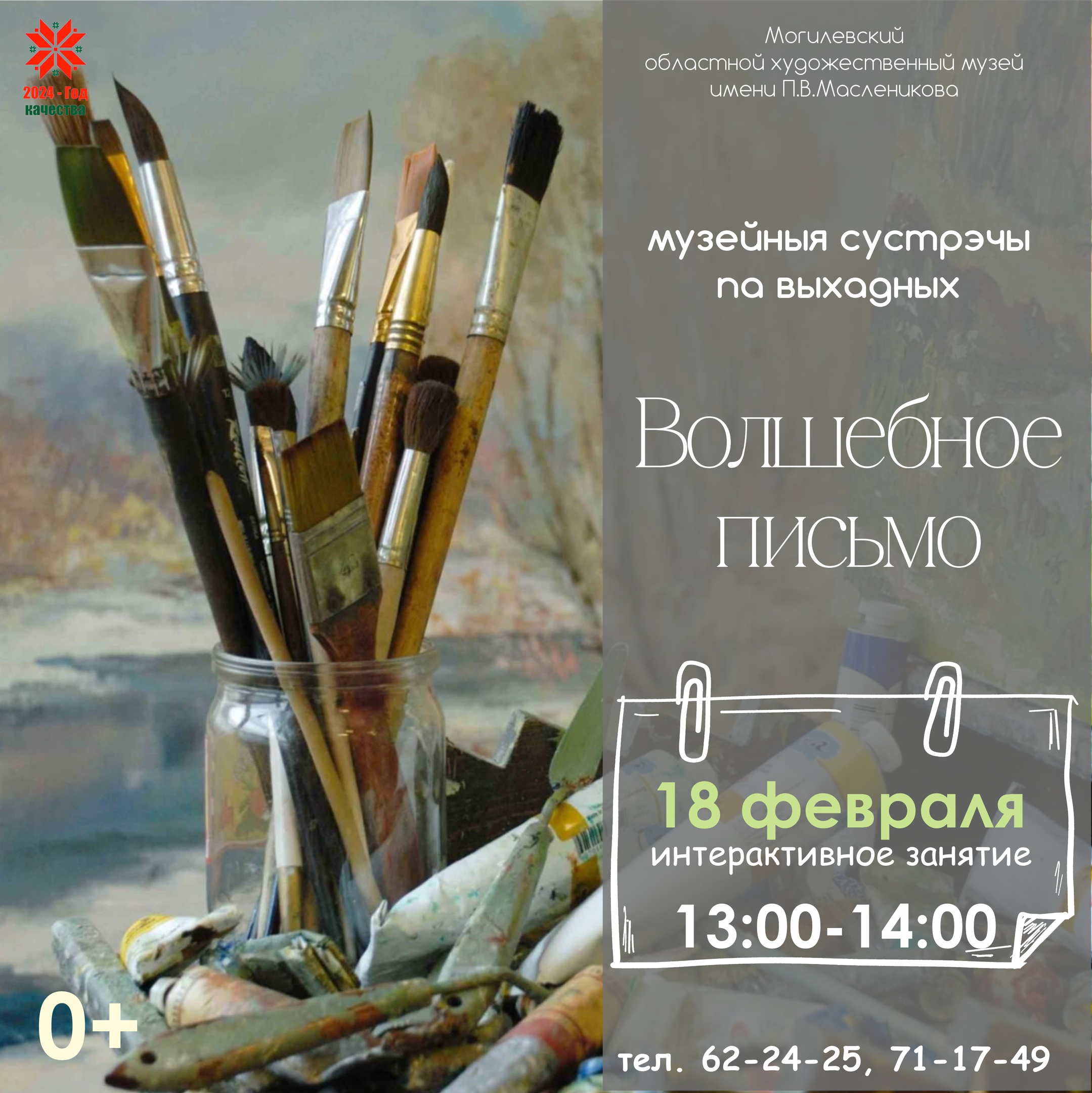 В воскресенье, 18 февраля, в музее состоится интерактивное занятие «Волшебное письмо», рассчитанное на детей дошкольного и младшего школьного возраста. Ребята познакомятся с основными материалами и инструментами художника, с помощью которых создаются картины, узнают о главных свойствах и различиях между акварелью, гуашью и маслом.