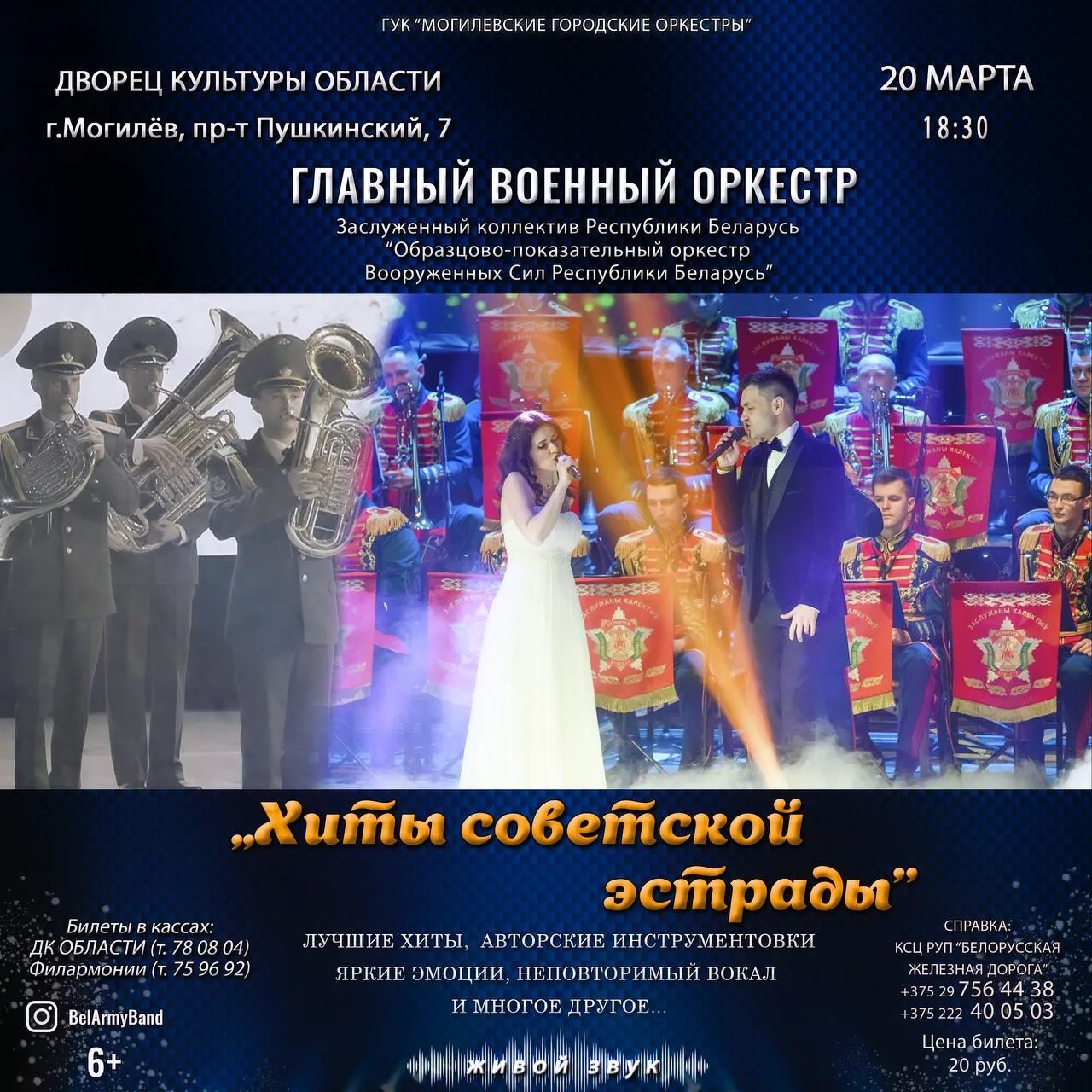 Концертную программу «Хиты советской эстрады» 20 марта представит в Могилеве заслуженный коллектив «Образцово-показательный оркестр Вооруженных Сил Республики Беларусь».