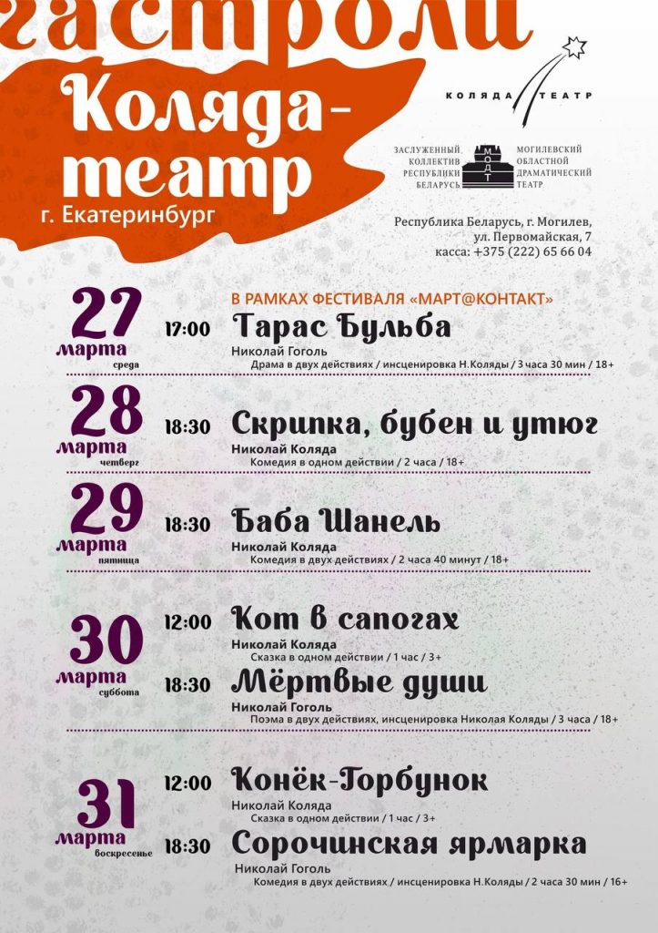 Завершат гастрольную программу 31 марта два спектакля – «Конек-Горбунок» (12:00) и «Сорочинская ярмарка» (18:30).