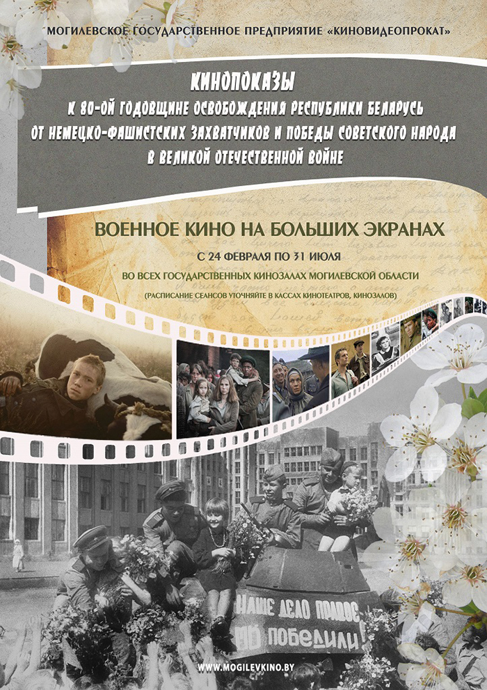 В рамках празднования 80-й годовщины освобождения Республики Беларусь от немецко-фашистских захватчиков в государственных кинозалах Могилева и Могилевской области проходят бесплатные кинопоказы фильмов о Великой Отечественной войне из числа советской и белорусской киноклассики. Об этом рассказали на предприятии «Киновидеопрокат».