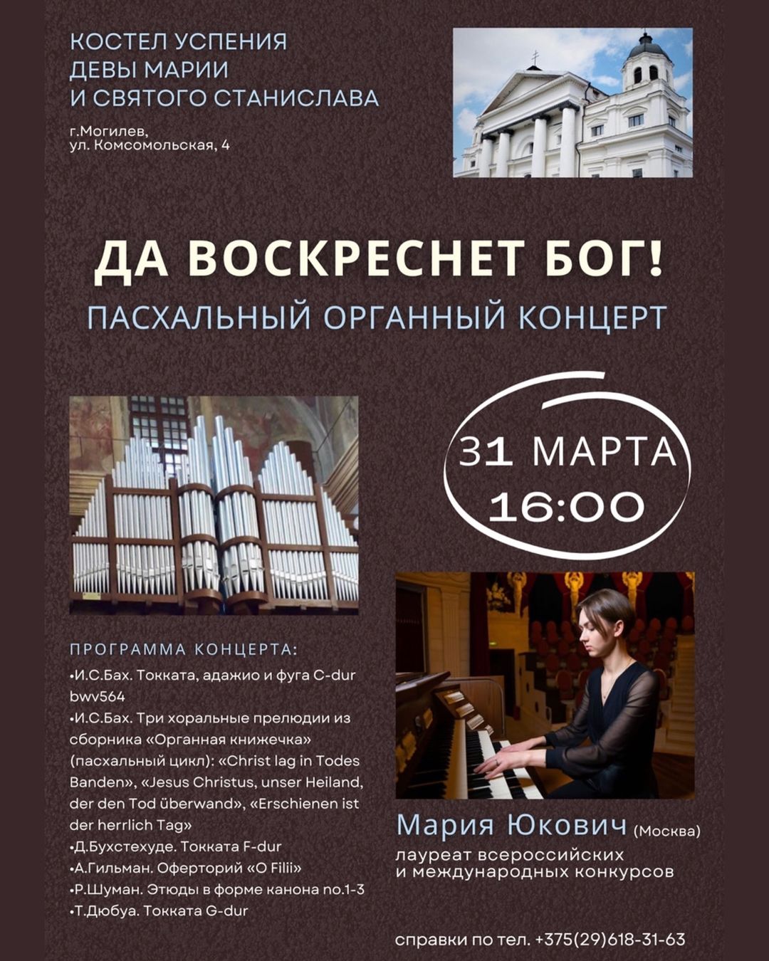 Пасхальный органный концерт пройдет 31 марта в костеле Успения Девы Марии и Святого Станислава (ул. Комсомольская, 4).