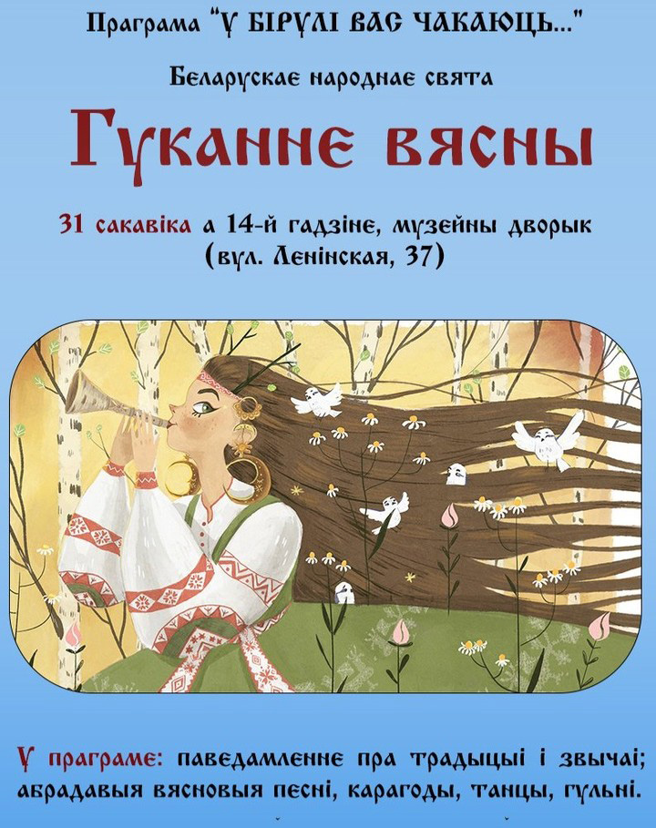 Народный праздник «Гуканне вясны» пройдет в музее В.К. Бялыницкого-Бирули 31 марта, сообщили в учреждении культуры.