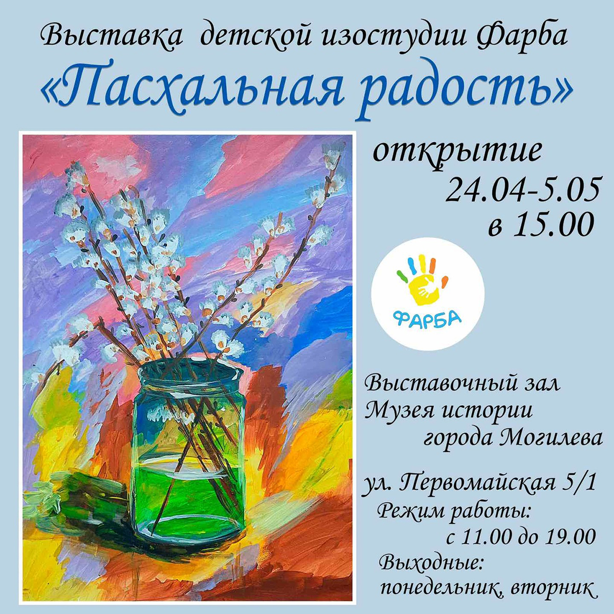 Работы воспитанников детской изостудии «Фарба» можно будет увидеть в Выставочном зале Могилева с 24 апреля. Новый проект под названием «Пасхальная радость» посвящен празднику света и добра.