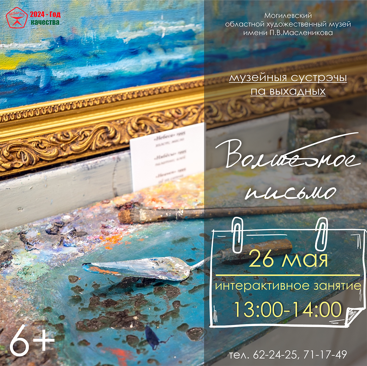 В воскресенье, 26 мая, в музее пройдет интерактивное занятие «Волшебное письмо», рассчитанное на детей дошкольного и младшего школьного возраста. Во время занятия ребята познакомятся с основными материалами и инструментами художника, с помощью которых создаются картины, узнают главные свойства и различия между акварелью, гуашью и маслом.