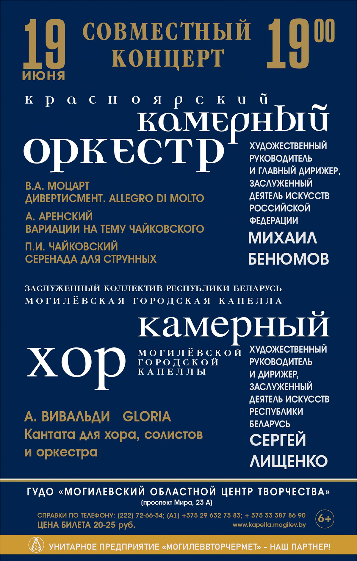Красноярский камерный оркестр и камерный хор Могилевской городской капеллы готовят совместный концерт. Он пройдет 19 июня в областном центре творчества (пр-т Мира, 23).