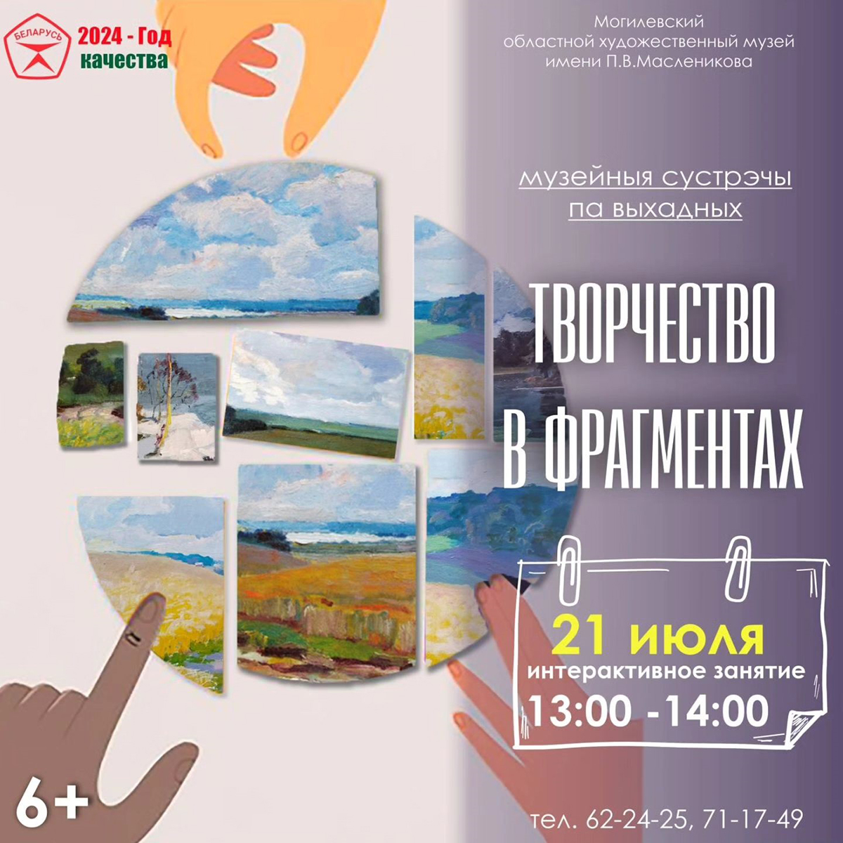 В воскресенье, 21 июля, всех желающих ждут на интерактивном занятии «Творчество в фрагментах», во время которого посетителей познакомят с жизнью и творчеством художника П.В. Масленикова, а после каждый сможет проверить свою внимательность и память в викторине.