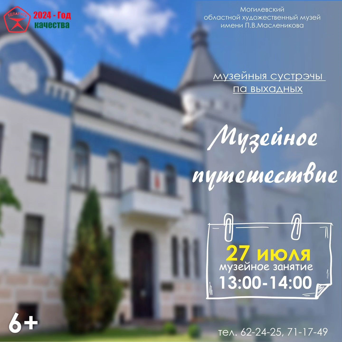 — С 13:00 до 14:00 мы предлагаем посетить обзорную экскурсию (6+), где вам расскажут об истории здания, его удивительной архитектуре и особенностях, о таинственной комнате-сейфе и исчезнувших сокровищах. Кроме того, мы остановимся на отдельных этапах развития художественного музея, а также познакомим с нашими постоянными экспозициями «Сохраненное наследие», «Галерея Народного художника Беларуси П.В. Масленикова» и «Тайна креста», — рассказали в учреждении культуры.