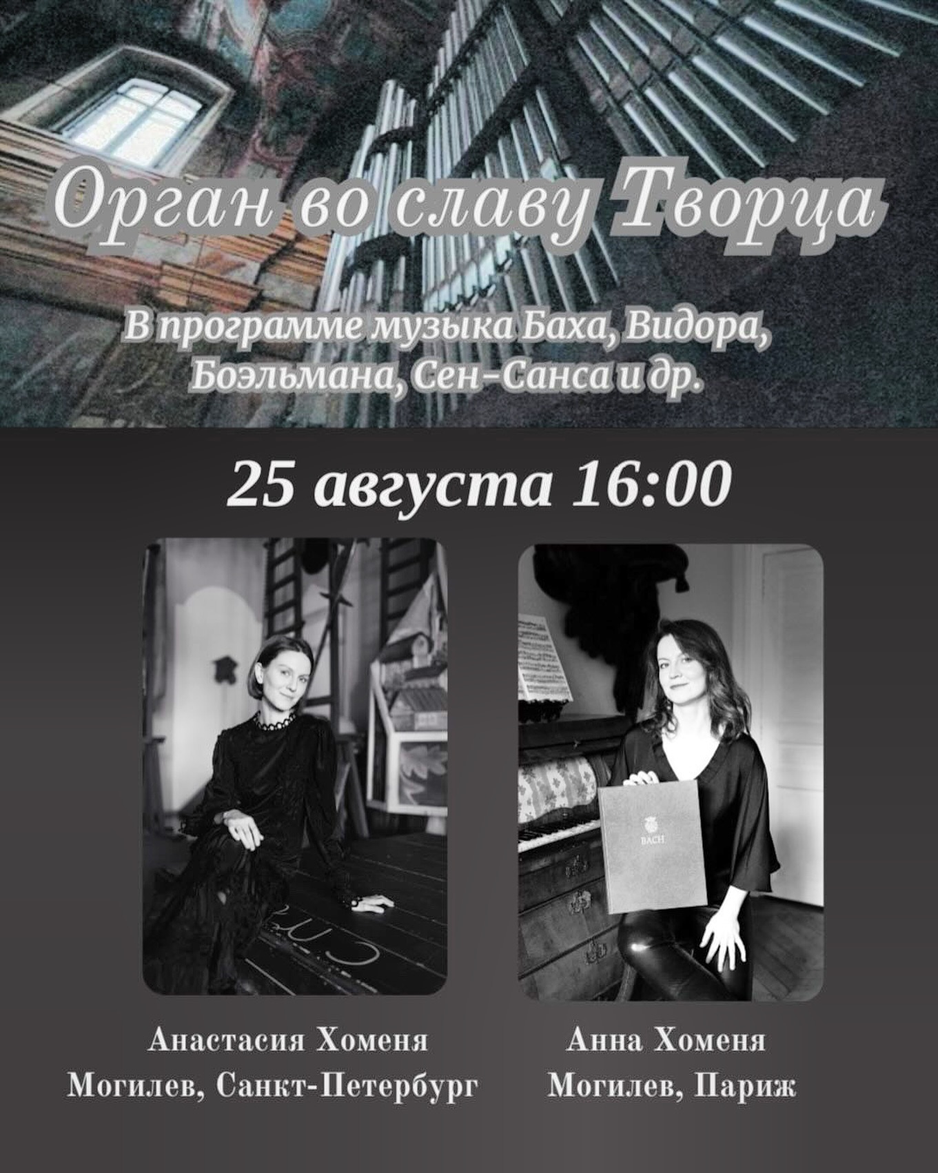 В исполнении Анастасии и Анны Хомени прозвучит музыка Баха, Видора, Боэльмана, Сен-Санса и др.