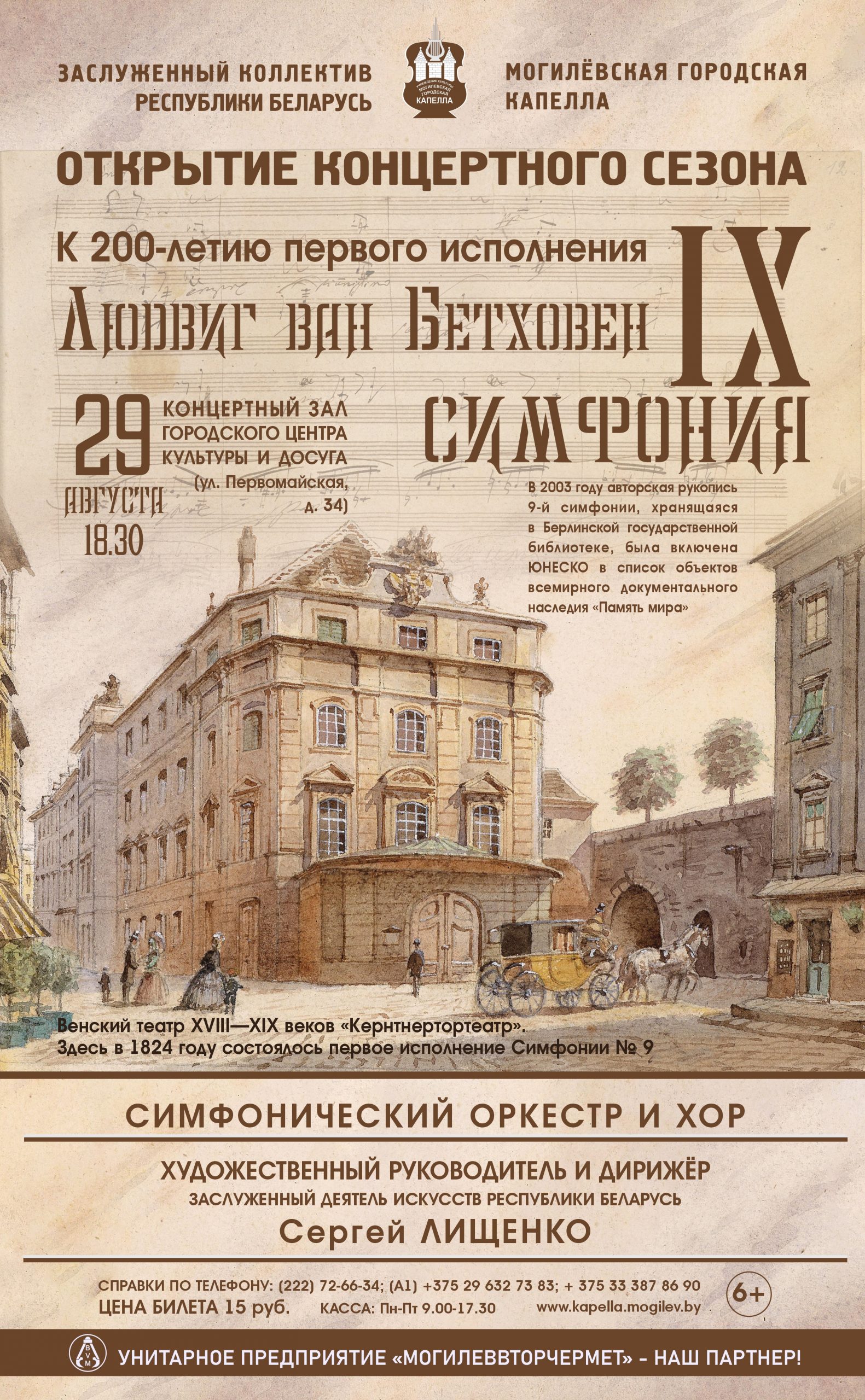 Программа будет посвящена 200-летию первого исполнения Симфонии № 9 Людвига ван Бетховена. Произведение впервые прозвучало в Вене в 1824 году.