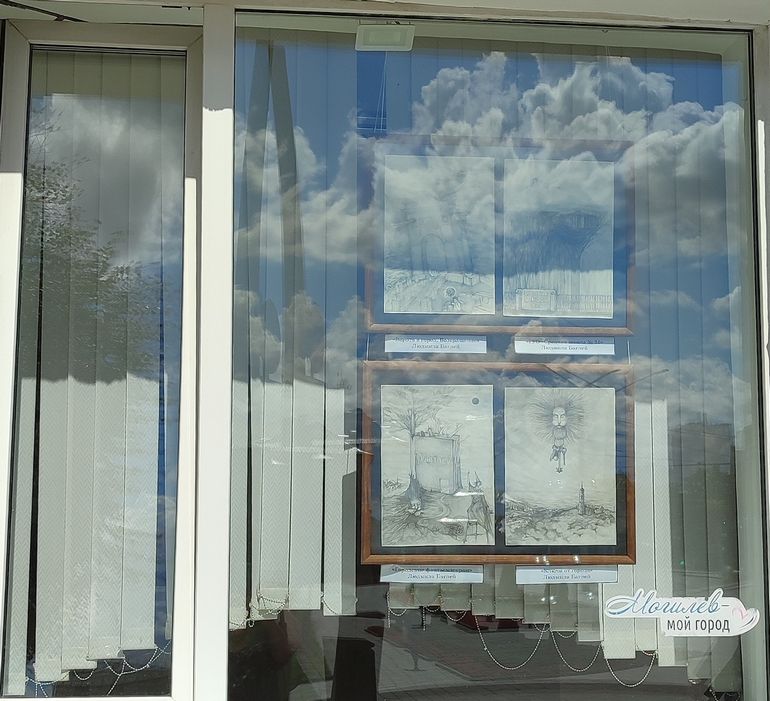 В окнах центральной городской библиотеки им. К.Маркса представлена выставка графических работ «Городские фантасмагории» могилевчанки Людмилы Баглей, посвященная родному Могилеву. Здесь можно увидеть 28 произведений автора.
