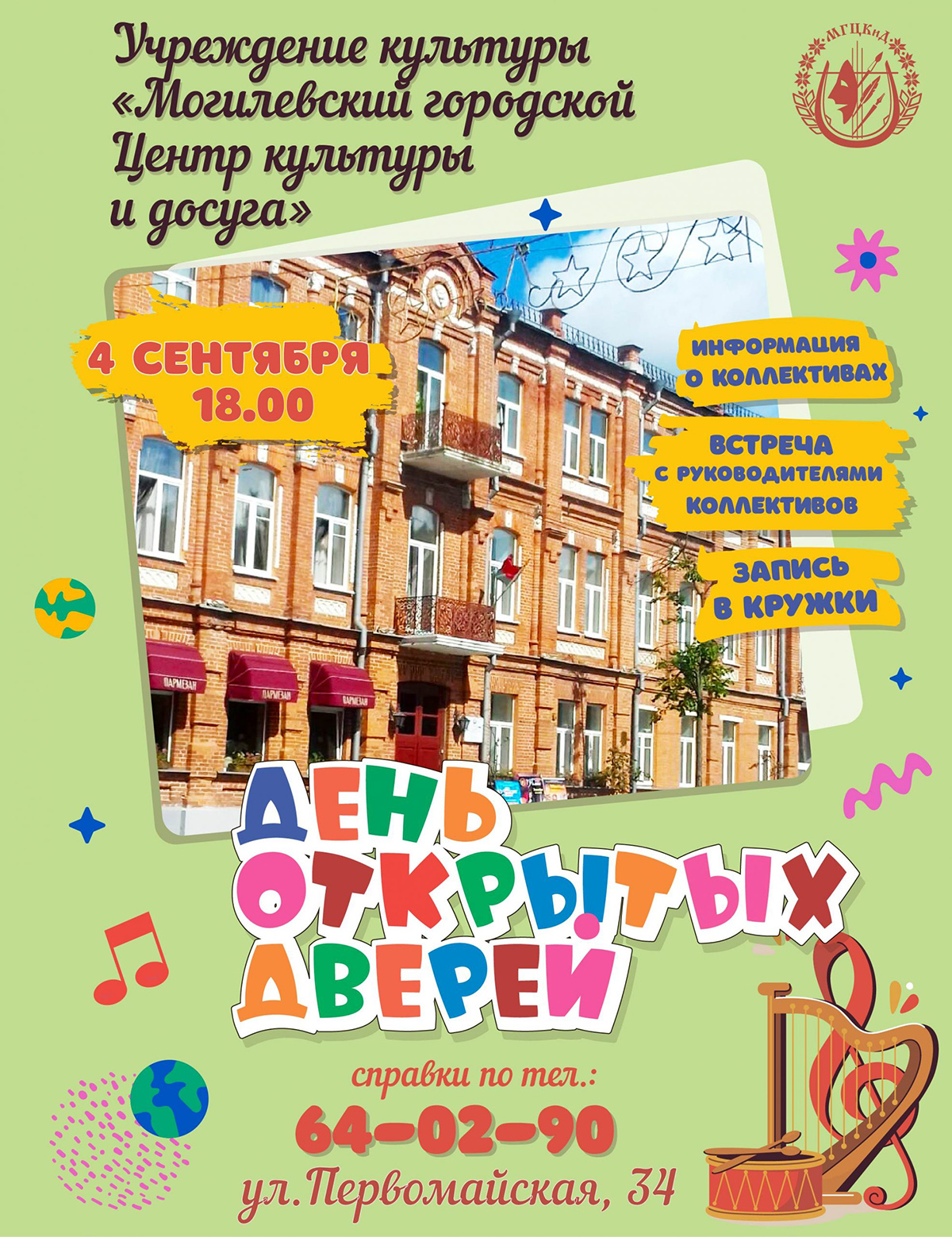 Городской Центр культуры и досуга проведет 4 сентября День открытых дверей. Все пришедшие на мероприятие смогут получить информацию о коллективах, которые работают на базе учреждения, встретиться с их руководителями, записаться в кружки.
