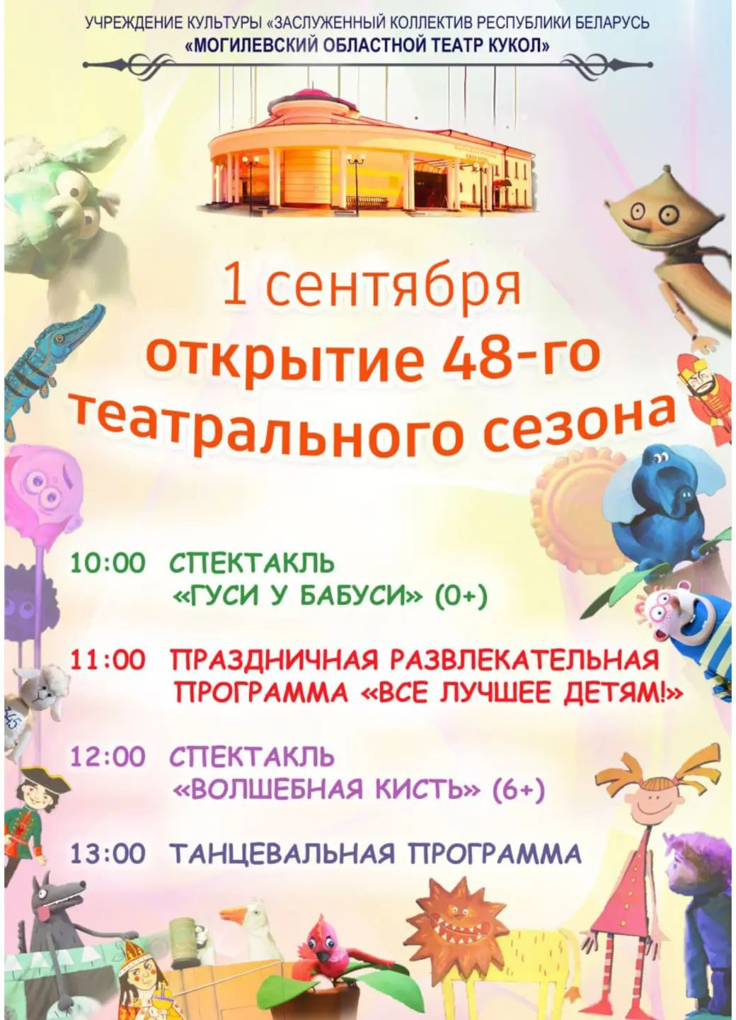 Могилевский областной театр кукол приглашает всех на открытие 48-го театрального сезона, которое состоится 1 сентября.