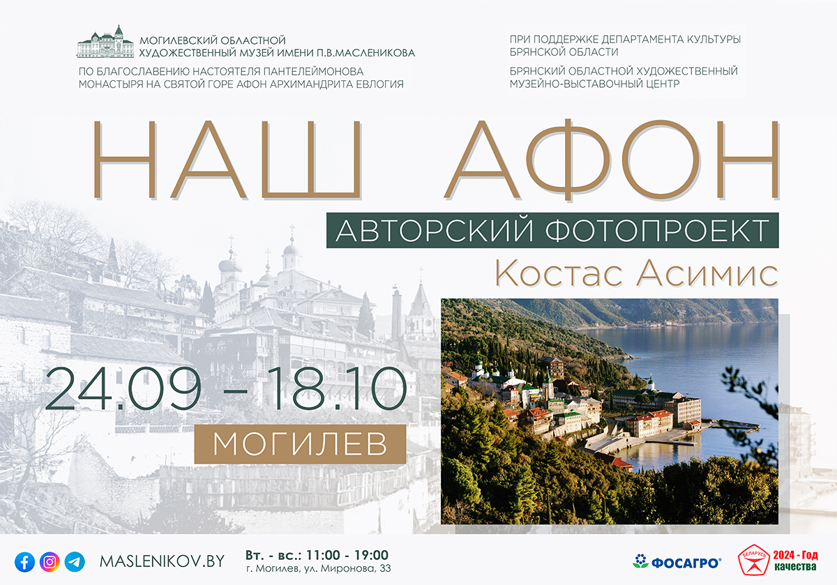 — Почти 40 лет Святая гора Афон является главной темой жизни и творчества фотографа. На выставке будет представлено более 100 снимков. Жители и гости Могилева смогут прикоснуться к истории зарождения и развития русского монашества, погрузиться в удивительный мир жизни Святой горы Афон, — отметили в музее. — Проект реализуется в рамках Меморандума о сотрудничестве государственного бюджетного учреждения культуры «Брянский областной художественный музейно-выставочный центр» и учреждения культуры «Могилевский областной художественный музей имени П.В. Масленикова».