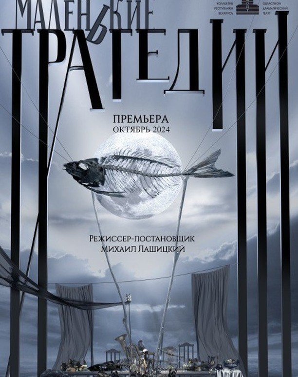 Спектакль «Маленькие трагедии» (сценический мистериум в 2-х действиях) — первая яркая премьера нового театрального сезона Могилевского драмтеатра. Режиссер-постановщик Михаил Лашицкий предлагает зрителю взглянуть на великого Пушкина не только как на поэта-гения, но и как на поэта-философа.