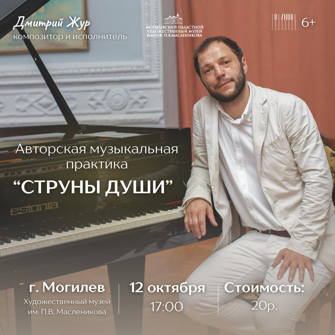Музыкальную практику «Струны души» представит в Могилеве 12 октября композитор Дмитрий Жур. Мероприятие пройдет в областном художественном музее им. П.В. Масленикова.