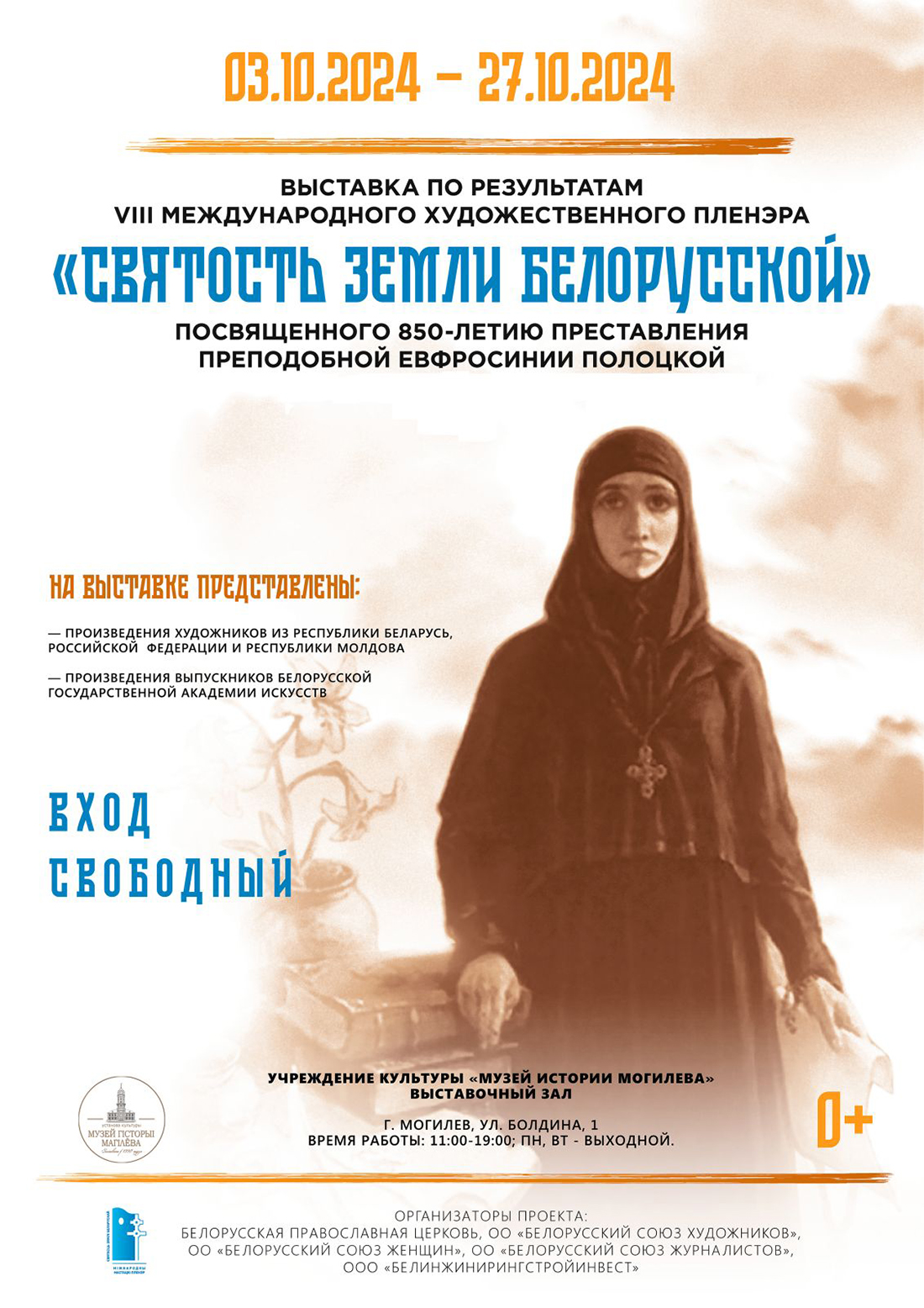 С 3 октября в выставочном зале Могилева начнет действовать проект по результатам VIII Международного художественного пленэра «Святость земли Белорусской», посвященного 850-летию преставления преподобной Евфросинии Полоцкой.