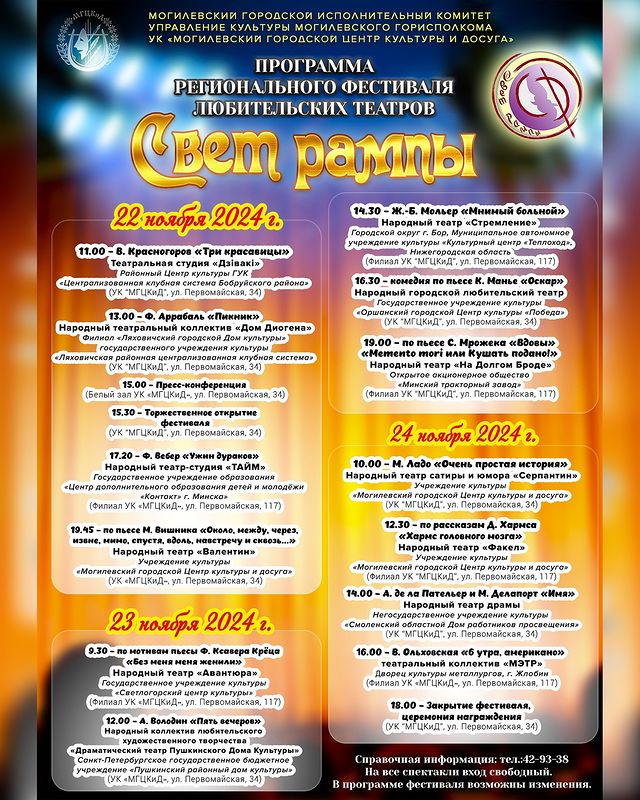 Программа регионального фестиваля любительских театров «Свет рампы»