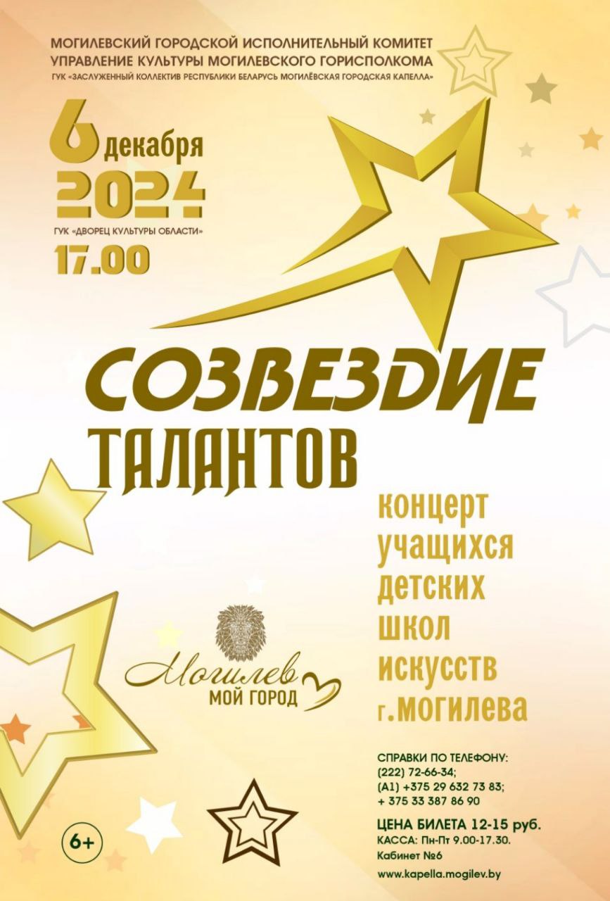 Концерт учащихся детских школ искусств областного центра «Созвездие талантов» пройдет в Могилеве 6 декабря. Об этом сообщили в управлении культуры горисполкома.