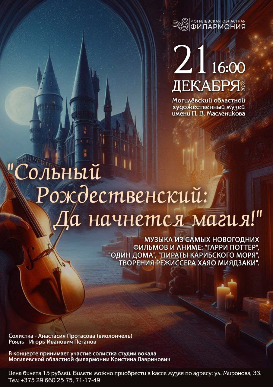 «Гарри Поттер», «Один дома», «Пираты Карибского моря», творения режиссера Хаяо Миядзаки — музыка из самых новогодних фильмов и аниме для волшебников, мечтателей и любителей приключений всех возрастов прозвучит в Могилеве 21 декабря.