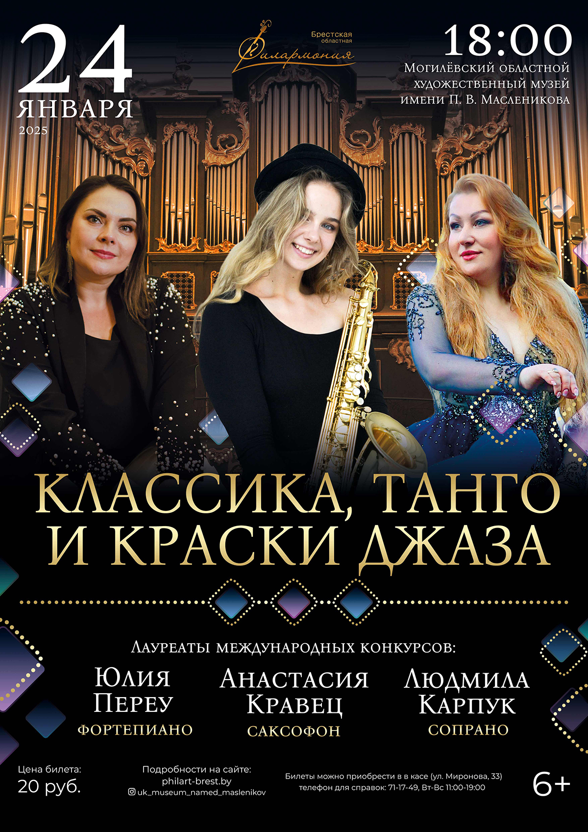 Концерт «Классика, Танго и краски Джаза» пройдет в Могилевском областном художественном музее им. П. В. Масленникова 24 января.