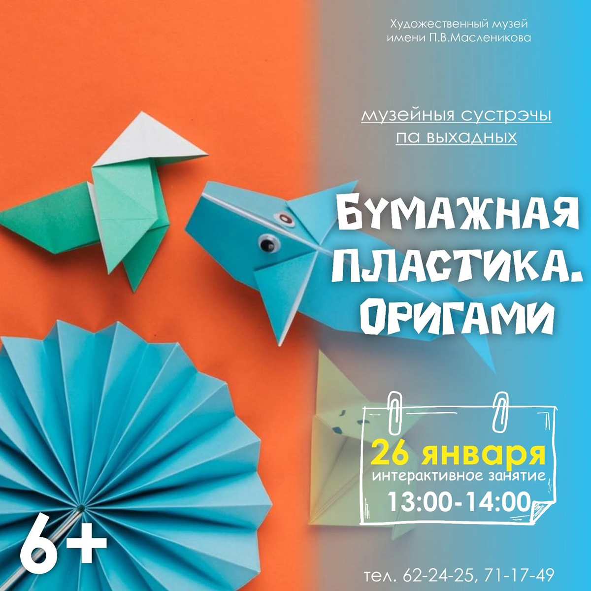 В воскресенье, 26 января, состоится интерактивное занятие «Бумажная пластика. Оригами», во время которого будет возможность не только познакомиться с техникой оригами, но и создать закладки своими руками.