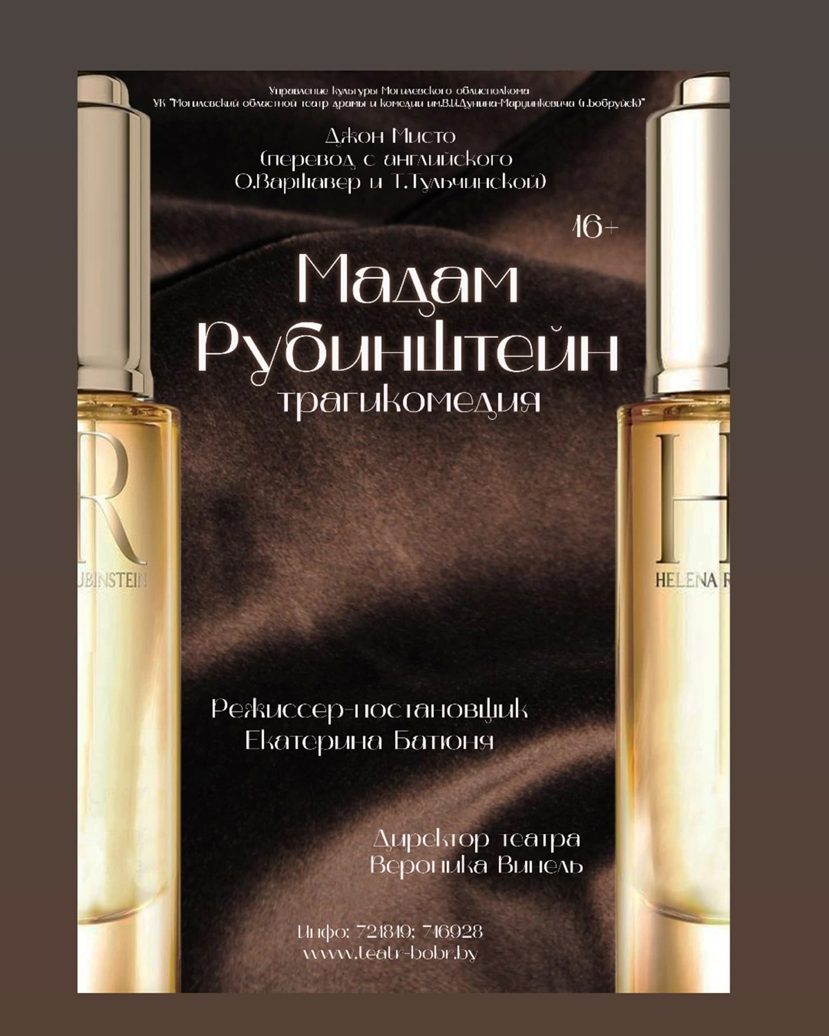 Областной театр драмы и комедии им. В.И.Дунина-Марцинкевича (г.Бобруйск) 28 февраля на сцене Могилевского драмтеатра представит спектакль «Мадам Рубинштейн» (трагикомедия, 16+).