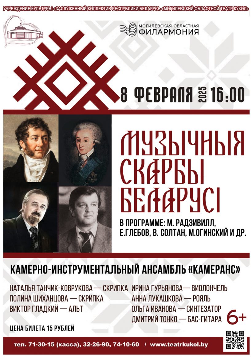 8 февраля в Могилевском областном театре кукол состоится концерт «Музычныя скарбы Беларусі». Программу представит камерный инструментальный ансамбль «КамерАнс».