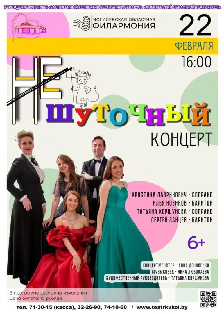 Студия вокала областной филармонии провожает зиму ярким мажорным аккордом: артисты подготовили для могилевчан «Не шуточный концерт». Программа будет представлена 22 февраля в Могилевском областном театре кукол.