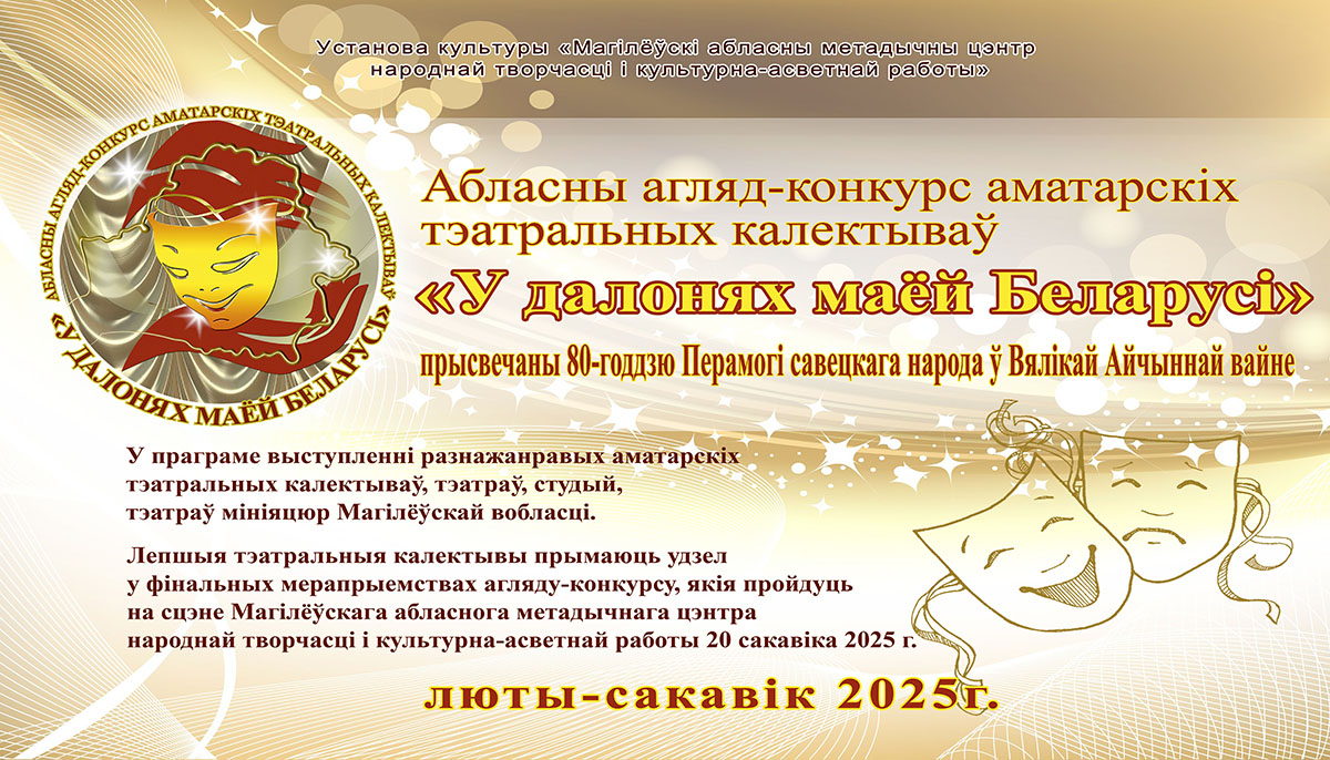 Областной смотр-конкурс любительских театральных коллективов «У далонях маёй Беларусі» проходит в регионе с 2011 года раз в два года. Цель конкурса – сохранение и развитие белорусских театральных традиций, активизация деятельности любительского искусства, выявление новых талантов.