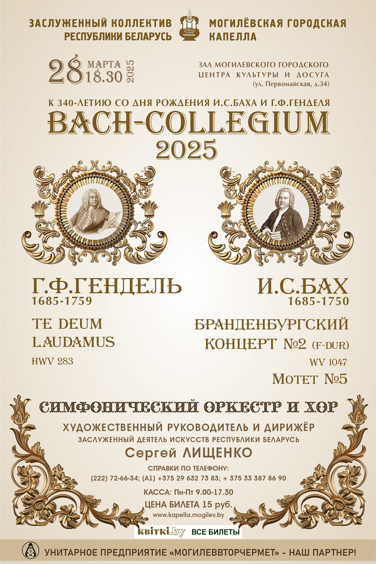 Концерт, посвященный 340-летию со дня рождения И.С.Баха и Г.Ф.Генделя, готовит Могилевская городская капелла. Программа будет представлена 28 марта на сцене городского центра культуры и досуга (ул.Первомайская, 34).